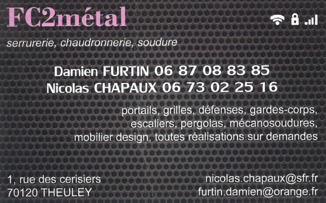 ◊ Maraîcher : LA FERME DES PRES ◊ Platerie-Peinture : SB AGENCEMENT ◊ Serrurerie, chaudronnerie : FC2 METAL ◊ Serres Horticoles : ◊ Taxi : AR TAXI ◊ Reiki : NORIA ◊ Matériels agricoles : LELIEUR SA ◊ Exploitant agricole : Nicolas FURTIN